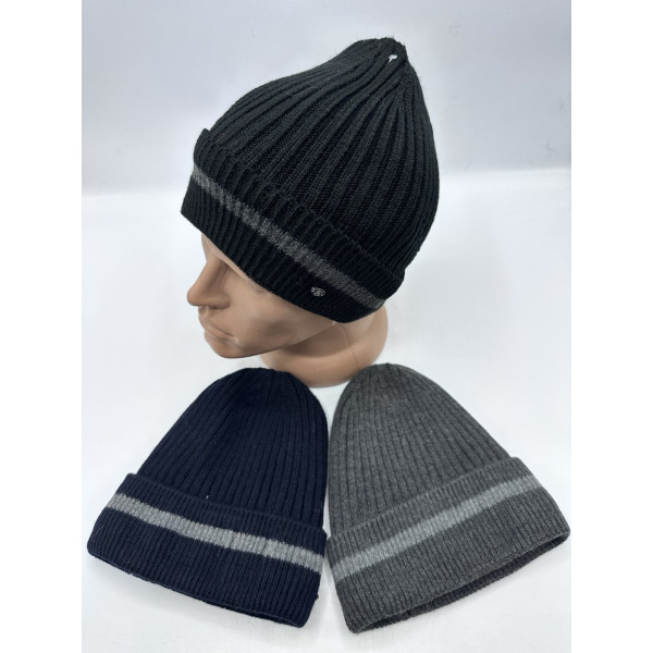 Чоловіча шапка з флісом. Щільна в’язка, всередині м’який фліс. Класичний фасон з відворотом і контрастною смугою. Колір — мікс. Опт від 5 шт.