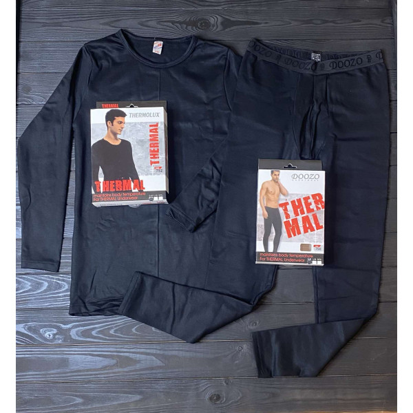 Чоловіча термобілизна THERMOLUX + DOOZO, Туреччина. Матеріал: 60% поліестер, 35% віскоза, 5% еластан. Розмір стандарт. Колір — чорний.S/M L/XL Battal