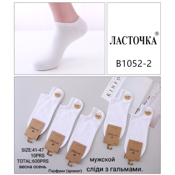 Чоловічі білі шкарпетки-сліди Ласточка B1052-2, парфумовані низькі шкарпетки з силіконовими гальмами, розмір 41-47, опт 600 шт.