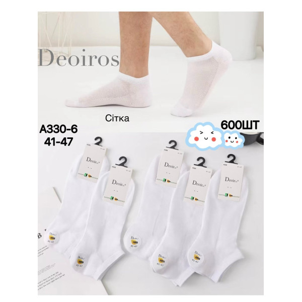 Чоловічі короткі шкарпетки Deoiros A330-6 «Сітка», колір білий, розмір 41-47, опт 600 шт.