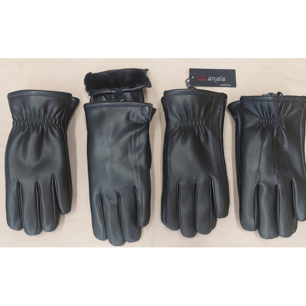 Чоловічі зимові рукавички — класична та практична модель для холодного сезону. Виготовлені з високоякісної екошкіри (штучна шкіра), що забезпечує зносостійкість. Рукавички повністю утеплені м'яким штучним хутром (або вовною) всередині, що гарантує надійний захист від морозу. Модель має класичний дизайн та універсальний чорний колір. В упаковці представлено 5 різних розмірів. Продаж оптом: 10 пар в упаковці.