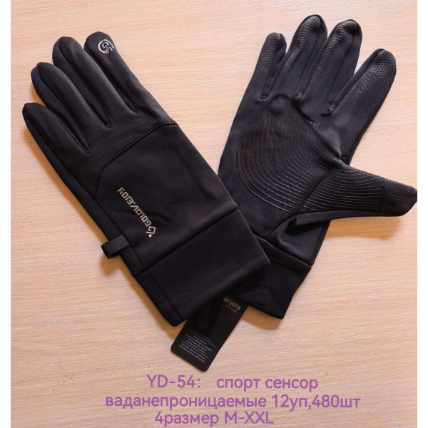 Чоловічі спортивні рукавиці YD-54. Водонепроникні, сенсорні, з антиковзким покриттям на долоні. Розміри: M–XXL. Упаковка — 12 шт.