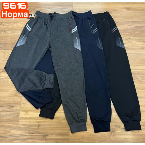 Чоловічі спортивні штани утеплені байкою (фліс), що забезпечує комфорт і тепло в холодну пору року. Модель з манжетами, зручним поясом на резинці та кишенями. Практичні кольори — чорний, сірий, темно-синій. Розмірний ряд: M–3XL. В упаковці 5 штук одного кольору.