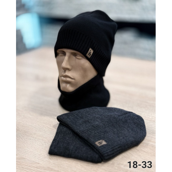 ОПТ. Базовий чоловічий комплект (шапка Біні з відворотом та снуд) на осінь/зиму. Стильна в'язка в рубчик. Щільний трикотаж, універсальний розмір. Надійний захист від холоду. Ходові кольори. Вигідна ціна ОПТОМ для вашого бізнесу.