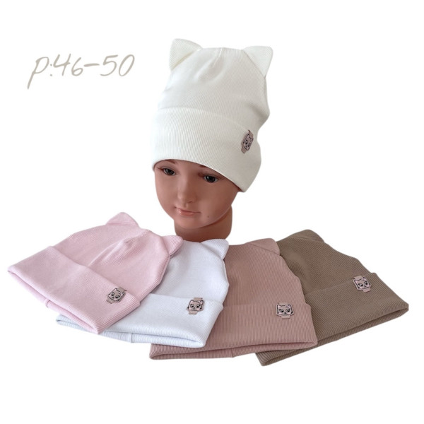 Дитяча шапка з подвійного трикотажу в рубчик. Демісезон (Весна/Осінь). Розмір 46-50 см. Продаж ОПТОМ. Opt7km.