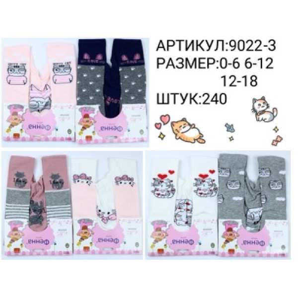 Дитячі колготки ЕННАФ 9022-3 з яскравими малюнками котиків. Розміри 6–12,міс. Упаковка — 240 шт.