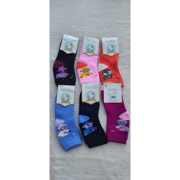 Дитячі Теплі Носки для дівчинки на МАХРІ. Розмір 2-4 роки. Зимові, високі. 12 пар в пачці (асорті кольорів). Продаж ОПТОМ Opt7km.
