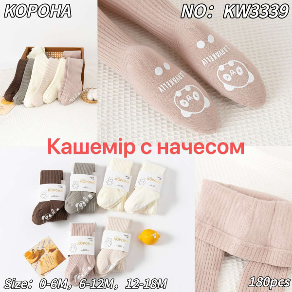 Колготки дитячі Forever Корона KW3339 виготовлені з м’якого кашеміру з начосом усередині. Забезпечують комфорт і тепло навіть для найменших діток. Модель із антиковзким малюнком на стопах, що робить носіння безпечним. Підходять для немовлят і малюків віком від 0 до 18 місяців. Доступні кольори: білий, молочний, кавовий, беж, сірий. Упаковка — 180 шт.