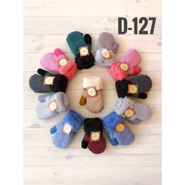 Дитячі варежки Арт D-127 виготовлені з акрилової пряжі, всередині теплий "мех", подвійна в’язка забезпечує комфорт і тепло. Декоровані яскравими смужками та м’яким відворотом. Ідеальний вибір для дітей 3–5 років. Упаковка — 12 пар у різнокольоровому міксі.