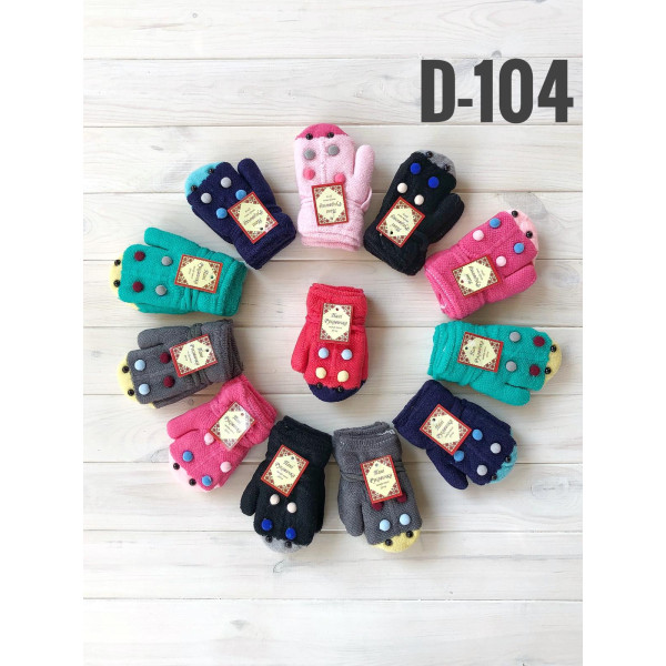 Дитячі варежки Арт D-104 виготовлені з м’якого акрилу, утеплені подвійним шаром для надійного захисту від холоду. Прикрашені об’ємними помпонами, що додає ігрового настрою. Ідеально підходять для дітей 1–3 років. У кожній упаковці 12 пар у різнокольоровому міксі.