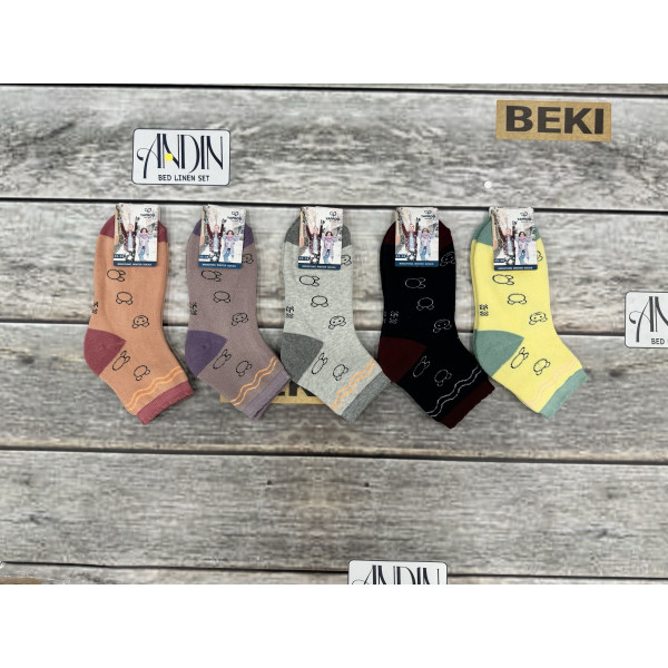Зимові дитячі шкарпетки з милим малюнком ведмедика виготовлені з м’якого та теплого матеріалу, який добре зберігає тепло та забезпечує комфорт протягом усього дня. Завдяки приємній на дотик тканині шкарпетки не подразнюють шкіру та надійно сидять на нозі. Розмір 35–38 підходить для дітей старшого віку та підлітків. Упаковка містить 10 штук у яскравому міксі кольорів — фіолетовий, сірий, жовтий, рожевий, зелений.