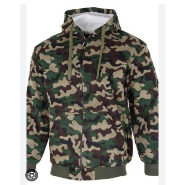 Чоловіча тепла кофта (толстовка) на блискавці, утеплена хутром (барашек) зсередини. Ідеальний вибір для холодного сезону. Матеріал: якісний трикотаж. Кофта має зручний капюшон з регульованими зав'язками, еластичні манжети та пояс. Стильний камуфляжний принт. Розмірний ряд: XL, 2XL, 3XL, 4XL, 5XL. ОПТ: пачка 5 штук (повний розмірний ряд).