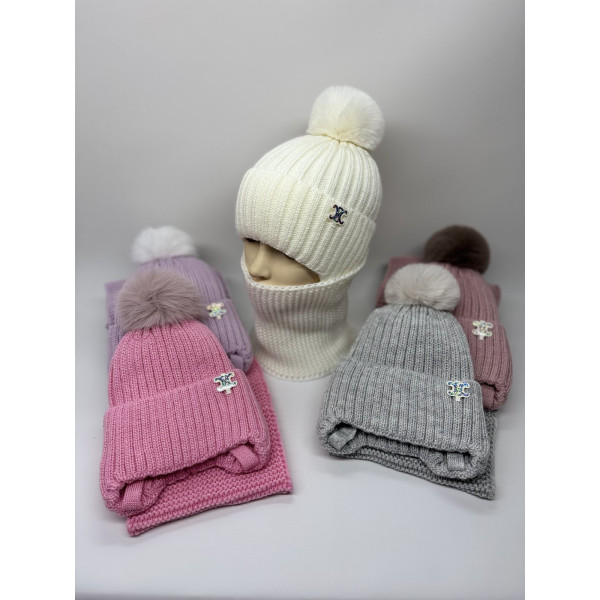Дитячий зимовий комплект (Шапка + Снуд) 50-52 см – тепло та комфорт на морози. Утеплення: Шапка та Снуд повністю дубльовані м'якою, гіпоалергенною флісовою підкладкою. Розмір: 50-52 см – підходить для дітей від 2 до 5 років (уточнюйте за обхватом голови). Матеріал: Тепла, щільна в'язка (наприклад, акрил або вовна з акрилом). Дизайн: У комплекті шапка (може бути з помпоном/вушками або класична біні) та снуд/хомут. Кольори: Мікс яскравих та базових кольорів в асортименті. ОПТ УМОВИ: Продаж упаковками (кількість уточнюється, наприклад, 5 шт) в міксі кольорів. Купуйте оптом на Opt7km!