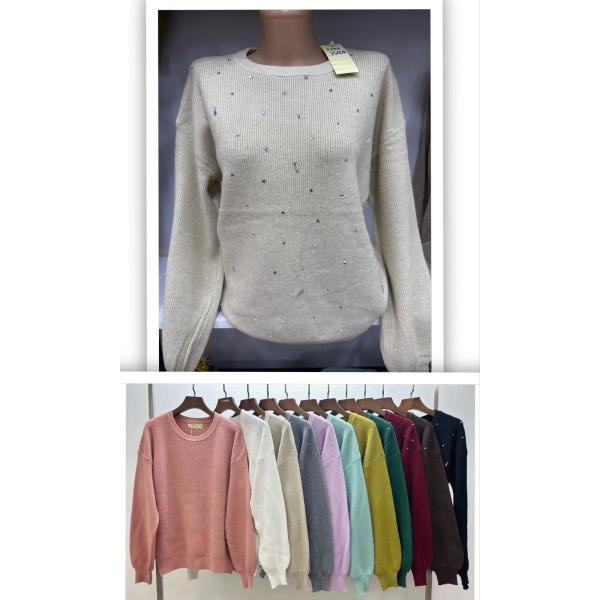 Надходження НОВИНОК ОПТОМ! М'який кашеміровий джемпер у рубчик, декорований стразами. Розмір 48-52. Широкий вибір кольорів.