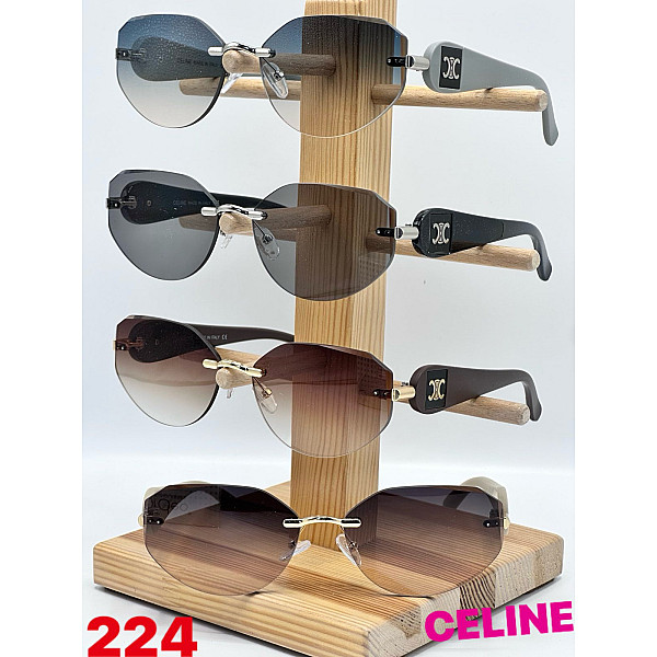 Сонцезахисні окуляри моделі 224 — це витончений аксесуар у стилі Celine, що поєднує мінімалізм безоправної конструкції з виразним брендовим декором. Форма лінз у вигляді м'якого багатокутника пасує більшості типів обличчя, додаючи образу сучасної елегантності.