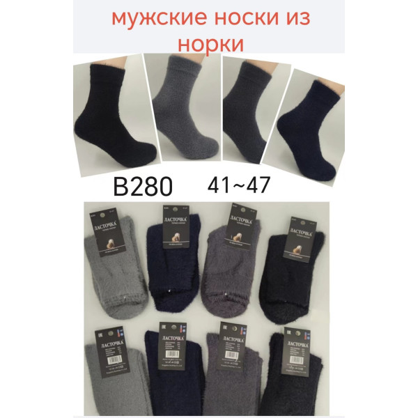 ОПТ! Чоловічі носки "Ласточка" B280 Зимові "Норка" (41-47). Найзатишніший варіант для морозної зими. Ці носки виготовлені з пухнастого та надзвичайно м'якого матеріалу, який завдяки імітації хутра норки забезпечує максимальне тепло та комфорт. Щільна, махрова в'язка надійно ізолює ноги від холоду. Носки мають високий підйом і добре сидять на нозі, не стискаючи її. Завдяки широкому розмірному ряду 41-47 вони підійдуть для більшості чоловіків. Модель B280 представлена в практичному міксі класичних темних кольорів (чорний, сірий, синій), що робить їх популярними серед покупців.