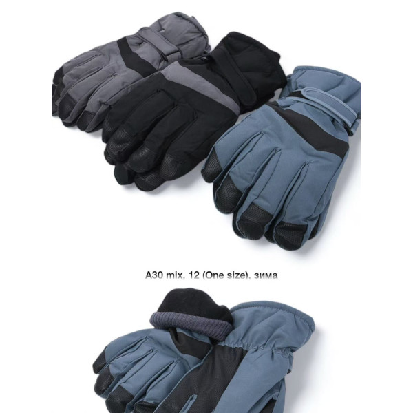 Купити чоловічі дуті рукавички оптом. Підкладка фліс, універсальний розмір, міцна плащова тканина. Упаковка 12 пар. Код: А30. Захист від снігу та вітру на OPT7KM.
