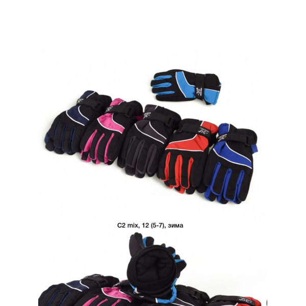 Купити дитячі дуті рукавички оптом. Підкладка фліс, розмір 5-7 років. Вологозахисна тканина. Упаковка 12 пар. Код: С-2. Найкраща ціна на OPT7KM.