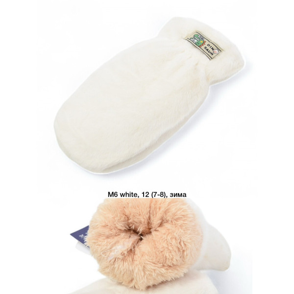 Купити дитячі рукавички Норка оптом. Білий колір, підкладка з густого хутра. Розмір 6-8 років. Упаковка 12 пар. Теплі та м'які. Код товару: М6. Доставка з OPT7KM.