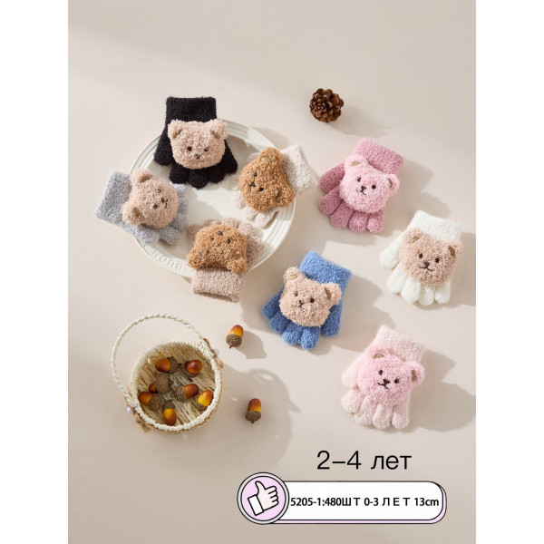 ОПТ! Дитячі Рукавички Ведмедик Начос 13см (5205-1) Купити Оптом 0-3 роки 480 шт. Мікс Opt7km