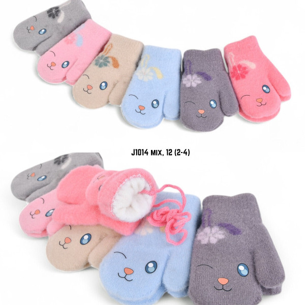 Купити дитячі варежки з альпаки оптом. Подвійні, надзвичайно теплі та м'які, на вік 2-4 роки. Упаковка 12 пар. Код: J1014. Преміальна якість на OPT7KM.