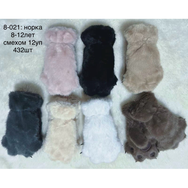 ОПТ: Дитячі варежки Норка 8-021. Хутро, 8-12 років. 432 шт. (12 уп.) з дизайном "Лапка".