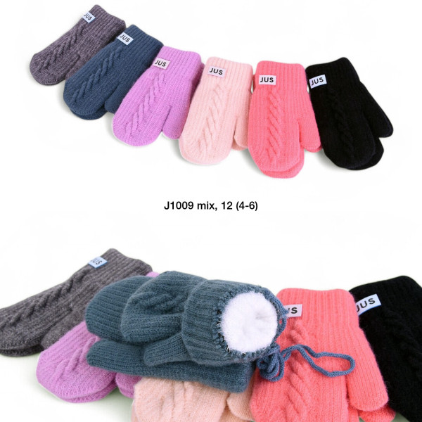 Купити дитячі подвійні варежки на вік 4-6 років оптом. Подвійне утеплення, зносостійка в'язка, універсальний дитячий розмір. Упаковка 12 пар. Код: J1009. Замовляйте на OPT7KM.