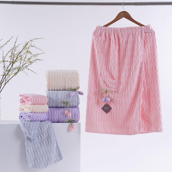 Купити оптом набори з мікрофібри: легкий халат та чалма для волосся. Швидко вбирають вологу, м'які та зносостійкі. Упаковка 4 шт. Код: 80338-100. Замовляйте на OPT7KM.