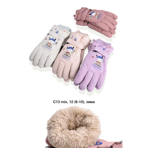 Купити підліткові дуті рукавички оптом. Утеплювач — хутро, вік 8-10 років. Водостійка плащівка, посилене тепло. Упаковка 12 пар. Код: С-13. Замовляйте на OPT7KM.