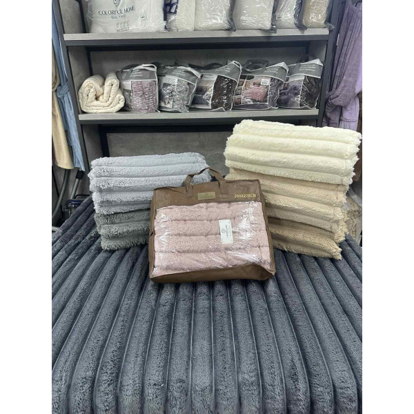 • Особливість: Головна відмінність моделі — широка рельєфна смуга 7 см, що надає пледу розкішного вигляду та додаткового об'єму.