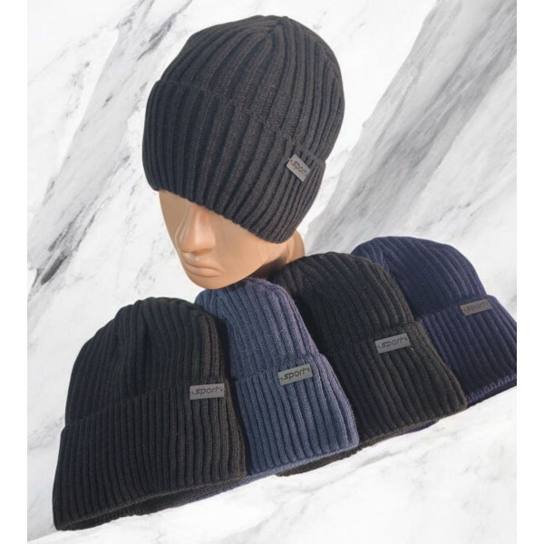 Класична зимова шапка-біні з щільною, об'ємною в'язкою вертикальний рубчик забезпечує максимальний захист від холоду. Шапка має теплу флісову підкладку (згідно запиту), що робить її ідеальною для використання взимку. Модель універсальна (Унісекс) та підходить для розміру 55-57 (згідно запиту). Акуратна нашивка "SPORT" підкреслює спортивний або повсякденний стиль. Представлена в ходових темних кольорах: чорний, сірий, синій.