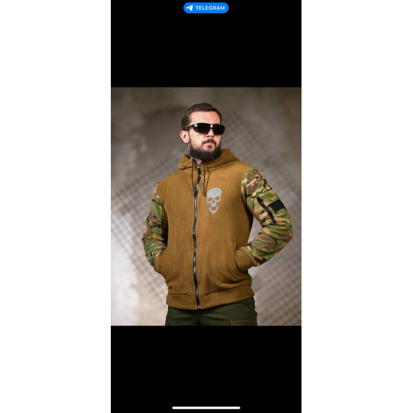 Чоловіча військова/трекінгова кофта з капюшоном та повною блискавкою. Виготовлена з теплого та міцного флісу, що забезпечує відмінну теплоізоляцію та повітропроникність. Дизайн включає тактичні елементи: кишені на блискавці та велкро-панель (липучка) на рукаві для шевронів. Колір Хакі/Олива універсальний для військових, полювання, туризму. Доступні розміри: S, M, L, XL, XXL. Незамінний елемент гардероба в холодну пору року. OPT7KM Купити оптом в Україні. Замовити з доставкою