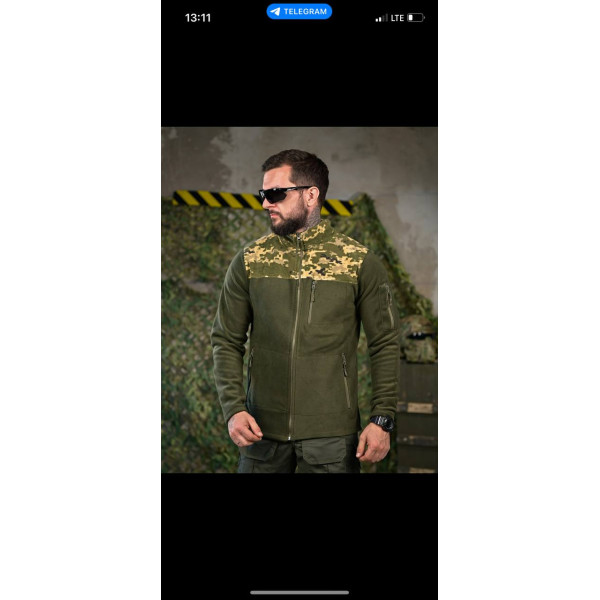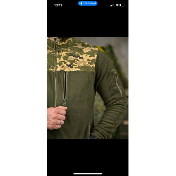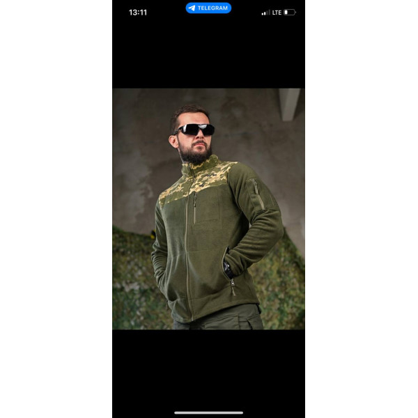 Чоловіча військова/трекінгова кофта з капюшоном та повною блискавкою. Виготовлена з теплого та міцного флісу, що забезпечує відмінну теплоізоляцію та повітропроникність. Дизайн включає тактичні елементи: кишені на блискавці та велкро-панель (липучка) на рукаві для шевронів. Колір Хакі/Олива універсальний для військових, полювання, туризму. Доступні розміри: S, M, L, XL, XXL. Незамінний елемент гардероба в холодну пору року. OPT7KM Купити оптом в Україні. Замовити з доставкою