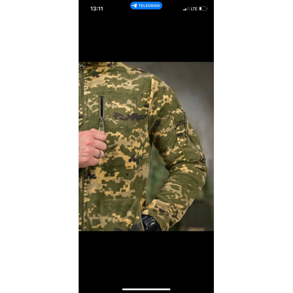 Чоловіча військова/трекінгова кофта з капюшоном та повною блискавкою. Виготовлена з теплого та міцного флісу, що забезпечує відмінну теплоізоляцію та повітропроникність. Дизайн включає тактичні елементи: кишені на блискавці та велкро-панель (липучка) на рукаві для шевронів. Колір Хакі/Олива універсальний для військових, полювання, туризму. Доступні розміри: S, M, L, XL, XXL. Незамінний елемент гардероба в холодну пору року. OPT7KM Купити оптом в Україні. Замовити з доставкою