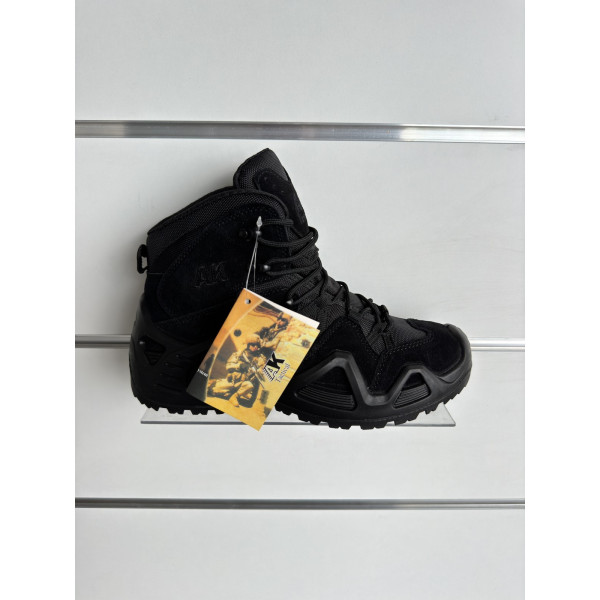 Універсальні трекінгові (тактичні) черевики AK Tactical в класичному чорному кольорі. Модель має водонепроникну мембрану (Waterproof), ідеально підходить для вологих умов, військової служби та міського носіння. Анатомічна підошва забезпечує комфорт та надійне зчеплення з поверхнею. В наявності ходові чоловічі розміри: 40, 41, 42, 43, 44. Чорний колір робить їх практичними та стійкими до забруднень. OPT7KM Купити оптом в Україні. Замовити з доставкою