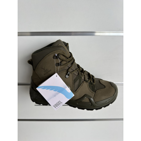 Оригінальні тактичні черевики Vogel в кольорі Олива. Завдяки технології Waterproof (водонепроникна мембрана) вони ідеально підходять для використання у вологих та екстремальних умовах. Модель розроблена для тривалого носіння, забезпечуючи максимальний комфорт, надійну фіксацію гомілкостопа та відмінне зчеплення з поверхнею. Підходять для військовослужбовців, туризму та активного відпочинку. В наявності ходові розміри: 42, 43, 44. OPT7KM Купити оптом в Україні. Замовити з доставкою