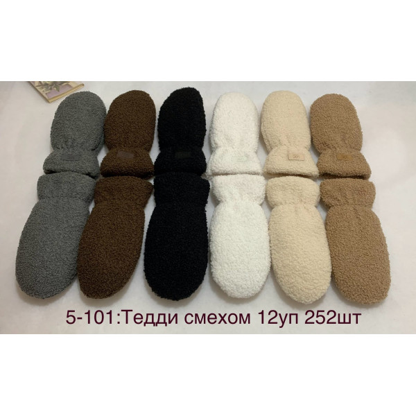 ОПТ: Теплі варежки Тедді 5-101 з хутром. Плюш, 6 кольорів.