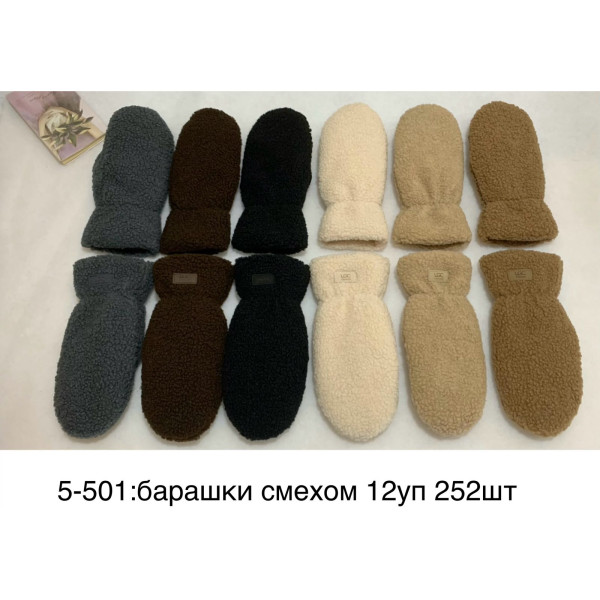 ОПТ: Теплі варежки Тедді 5-501 з хутром. Плюш, 6 кольорів.
