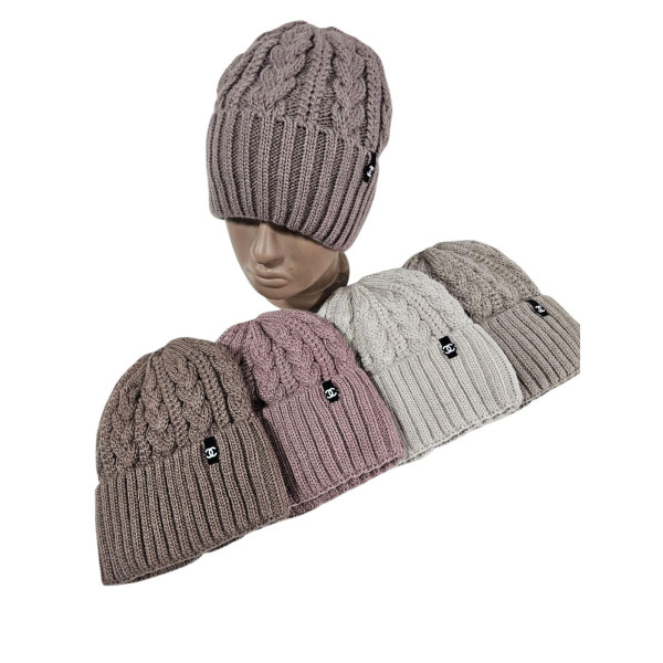 ОПТ! Жіноча/Унісекс шапка, в'язка (Розмір 56-58). Стильний та дуже теплий головний убір для холодної зими. Шапка виконана з м'якої пряжі з актуальною фактурною в'язкою у формі об'ємних кіс. Головна перевага для зимового сезону — тепла флісова підкладка (згідно з вашим запитом), яка надійно захищає від вітру та морозу. Класичний фасон із закотом підходить під різні типи обличчя. Розмір 56-58 є універсальним для більшості дорослих. Товар представлений у міксі нейтральних та пастельних кольорів (коричневий, сірий, бежевий, рожевий).