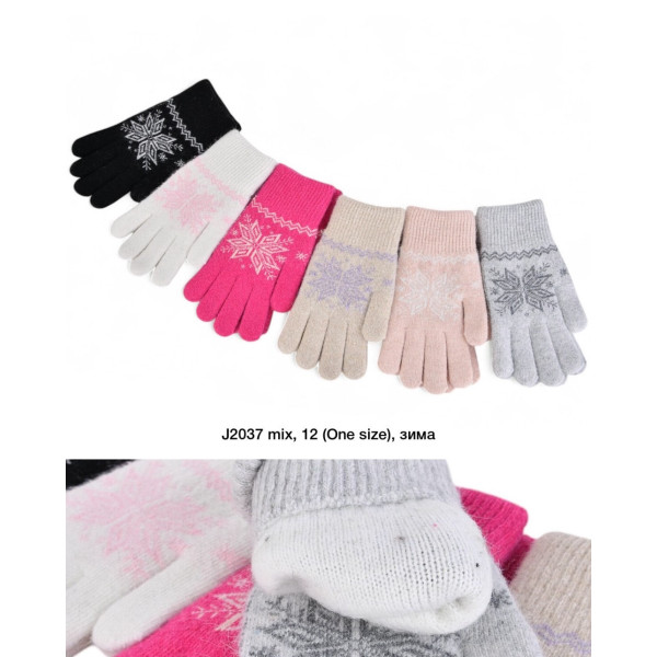 Купити жіночі рукавички Ангора J2037 оптом. Подвійна в'язка, універсальний розмір, м'яка текстура. Упаковка 12 пар. Найкраща ціна на зимові аксесуари від OPT7KM.