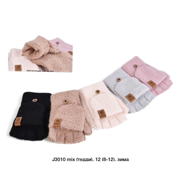 Купити жіночі рукавички без пальців з клапаном. Тканина Тедді, неймовірна м'якість, універсальний розмір. Упаковка 12 пар. Код: J3010. Найкраща ціна на трендові аксесуари на OPT7KM.