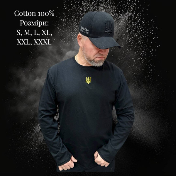 Патріотичний лонгслів із принтом "UKRAINE". Склад: 100% котон. Розміри: S, M, L, XL, XXL, XXXL. Колір — чорний.