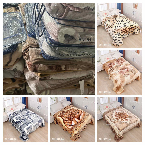 Пледи Colorful Home 1417-20 виготовлені з високоякісного акрилу, м’які та приємні на дотик. Завдяки щільності та вазі 3 кг плед добре зберігає тепло і створює затишок у будь-якій кімнаті. Розмір 210×230 см підходить для двоспального ліжка. У колекції представлені різноманітні кольори та малюнки (тварини, квіти, геометрія). Оптове замовлення — від 5 штук, мікс кольорів.