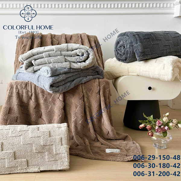 Євро пледи COLORFUL HOME виготовлені з щільної мікрофібри з фактурною в’язкою у вигляді об’ємних блоків («цеглинка»). Матеріал м’який, гіпоалергенний, добре зберігає тепло, легко переться та швидко висихає. Розмір 200×220 см дозволяє використовувати як покривало або як ковдру. Кольори в асортименті — сірий, бежевий, молочний, какао та інші. Підходить для дому, готелів, подарункових наборів. Опт від 5 шт.
