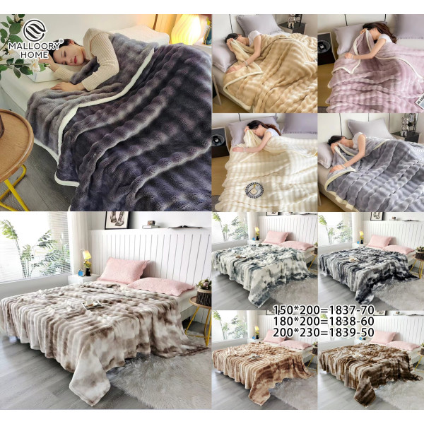 Пледи серії 1837–1839 виконані з якісного, м’якого та щільного матеріалу. Вони теплі, приємні на дотик і створюють затишок у домі. Розмір 150×200 см підходить як для односпального ліжка, так і для дивану. Кожен плед упакований у красиву сумку — зручно для зберігання та продажу. Оптове замовлення від 5 шт.
