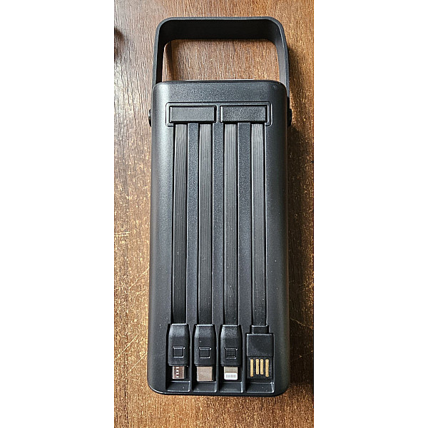 Повербанк Kensa 30000mAh, швидка зарядка PD 30W / QC 22.5W, вбудовані кабелі та ліхтарик