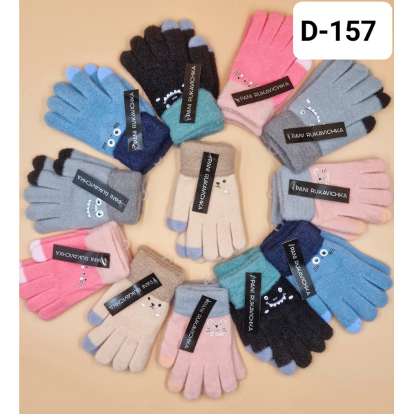 Рукавички дитячі Арт D-157. М’які, теплі та зручні у носінні. Довжина 15 см — підходить для дітей 4–6 років. Упаковка включає 12 пар у різному кольоровому міксі з веселими дитячими малюнками.