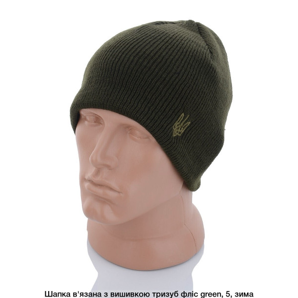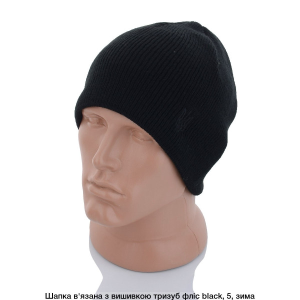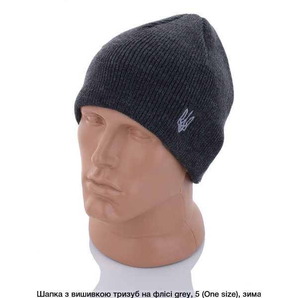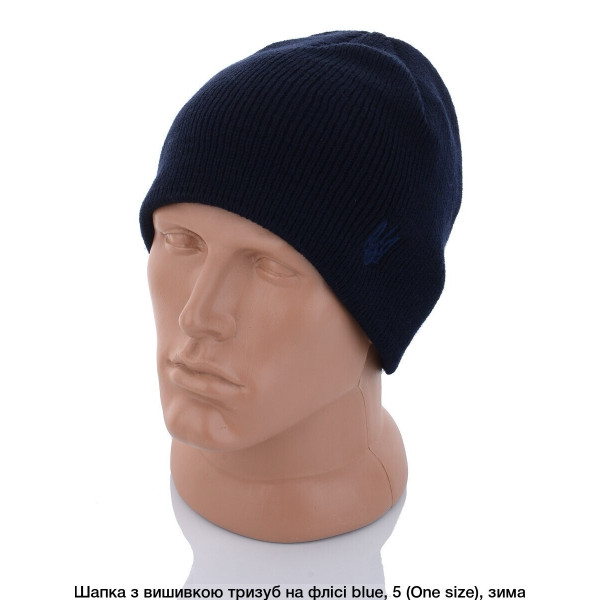 Тепла в’язана шапка з українським символом — тризубом. Внутрішня частина повністю утеплена м’яким флісом, що забезпечує комфорт та надійний захист від холоду. Ідеально підходить для зими. Представлена в класичних кольорах: сірий, чорний, синій та хакі. Розмір універсальний (One size).