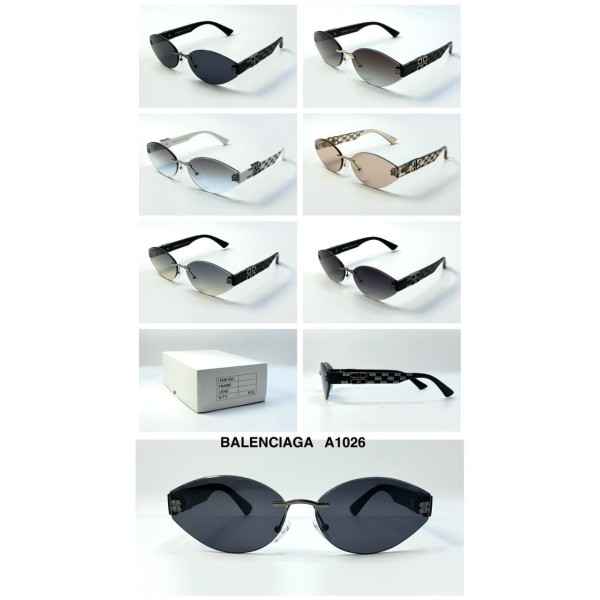 Ультрамодні безрамкові окуляри BALENCIAGA A1026 — сміливий аксесуар для поціновувачів футуристичного стилю. Модель вирізняється унікальною формою лінз та акцентними дужками.