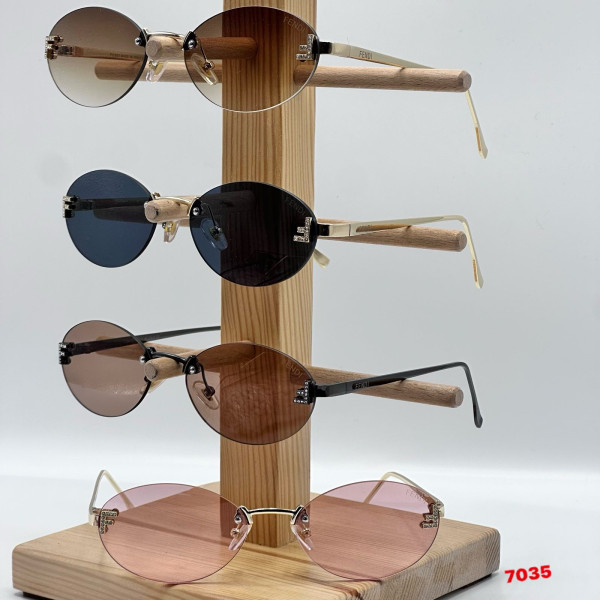 Витончена модель у стилі Fendi, що поєднує в собі легкість та розкіш. Овальні лінзи кріпляться безпосередньо до тонкої фурнітури, створюючи ефект невагомості. Головною особливістю моделі 7035 є інкрустовані сяючими каменями кріплення та впізнаваний логотип "F" на дужках. Градієнтні лінзи пастельних відтінків ідеально підходять для створення романтичного та водночас впевненого жіночого образу. Надійний захист від ультрафіолету категорія UV400.